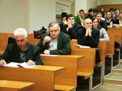 Также с докладом выступил завкафедрой АГЗ НГАХА И.В Поповский. Игорь Викторович поделился своим богатым опытом и рассказал о зданиях, которые были построены по его проектам. Под его руководством был возведен головной офис Алтайского Сбербанка в г. Барнауле, гостиничный комплекс «Беловодье» в г.Белокурихе, центральный офис Бийского отделения Сбербанка, центральный офис Новоалтайского отделения Сбербанка, храм в г.Новокузнецке. Также И.В. Поповский участвовал в формировании концепции Новосибирского планетария.