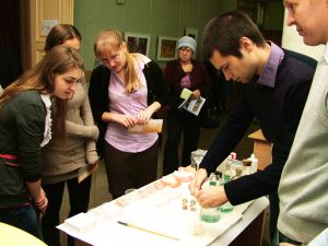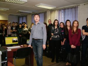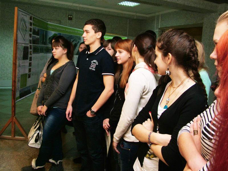 Силами студентов 381 группы для всех желающих была проведена ознакомительная экскурсия по университету. Школьники посетили вычислительный центр, спортивно-оздоровительный комплекс, музей, выставки макетов, витражей, выпускных квалификационных работ, общежития и т.д. Студенты кафедры Архитектурного проектирования зданий и сооружений демонстрировали технику рисования песком.