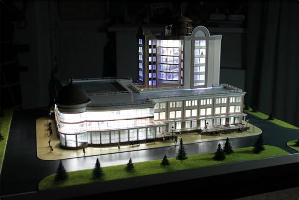 Печать мелких элементов архитектурного макета административного здания, г. Барнаул: купола, лестницы, въезд в парковку.