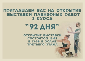 16 сентября (сегодня) в 13.30 состоится открытие выставки пленэрных работ 3 курса студентов-архитекторов «92 дня».