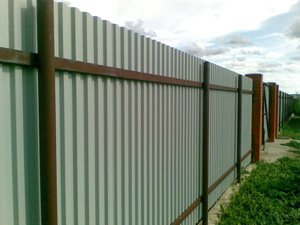 Кроме того профнастил очень хорошо подходит для возведения заборов, так как это займет мало ресурсов, времени и сил, но при этом ограждение получается довольно надежным и добротным. Забор из этого материала служит отличным экраном, отражающим громкие звуки и может подойти к любому виду экстерьера, поскольку купить профнастил для забора можно в различных цветовых вариантах.