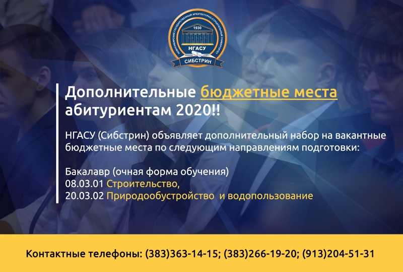 НГАСУ (Сибстрин) объявляет дополнительный набор на вакантные бюджетные места по следующим направлениям подготовки: