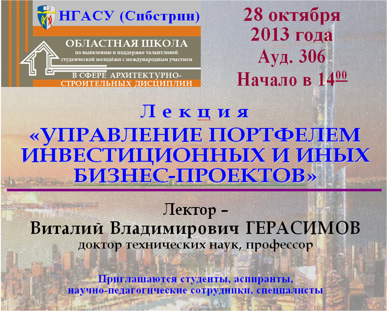 лектор – доктор экономических наук, профессор НГАСУ (Сибстрин) Виталий Владимирович Герасимов;
