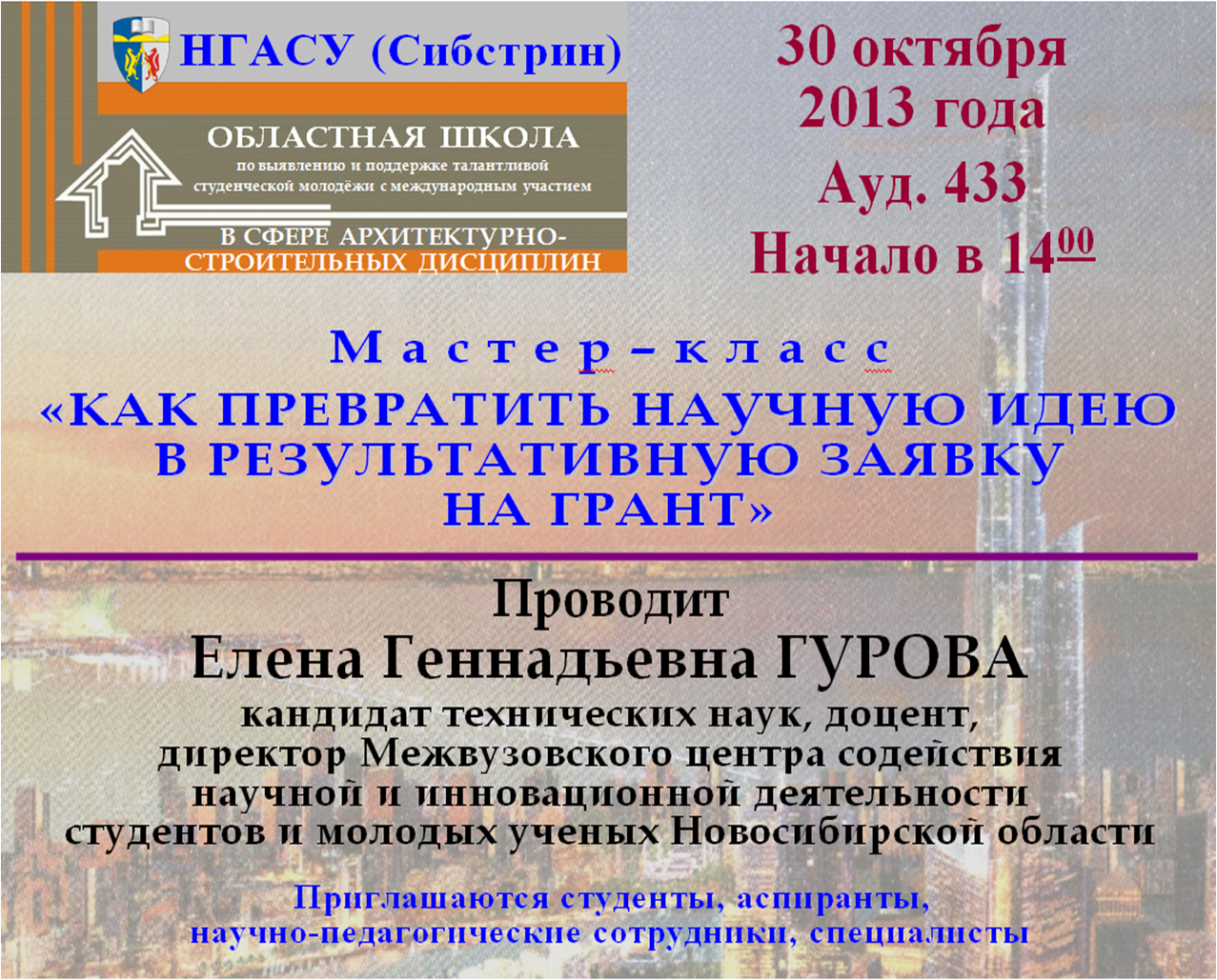 начало в 14.00, ауд. 433 главного корпуса НГАСУ (Сибстрин), ул. Ленинградская, 113