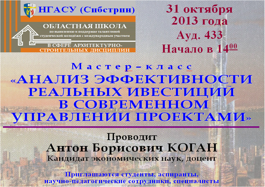 – мастер класс «Анализ эффективности реальных инвестиций в современном управлении проектами»,