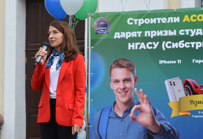 Перед началом розыгрыша к собравшимся на площади студентам обратился ректор НГАСУ (Сибстрин) Юрий Сколубович и генеральный директор СРО АСОНО Мария Бирюкова.