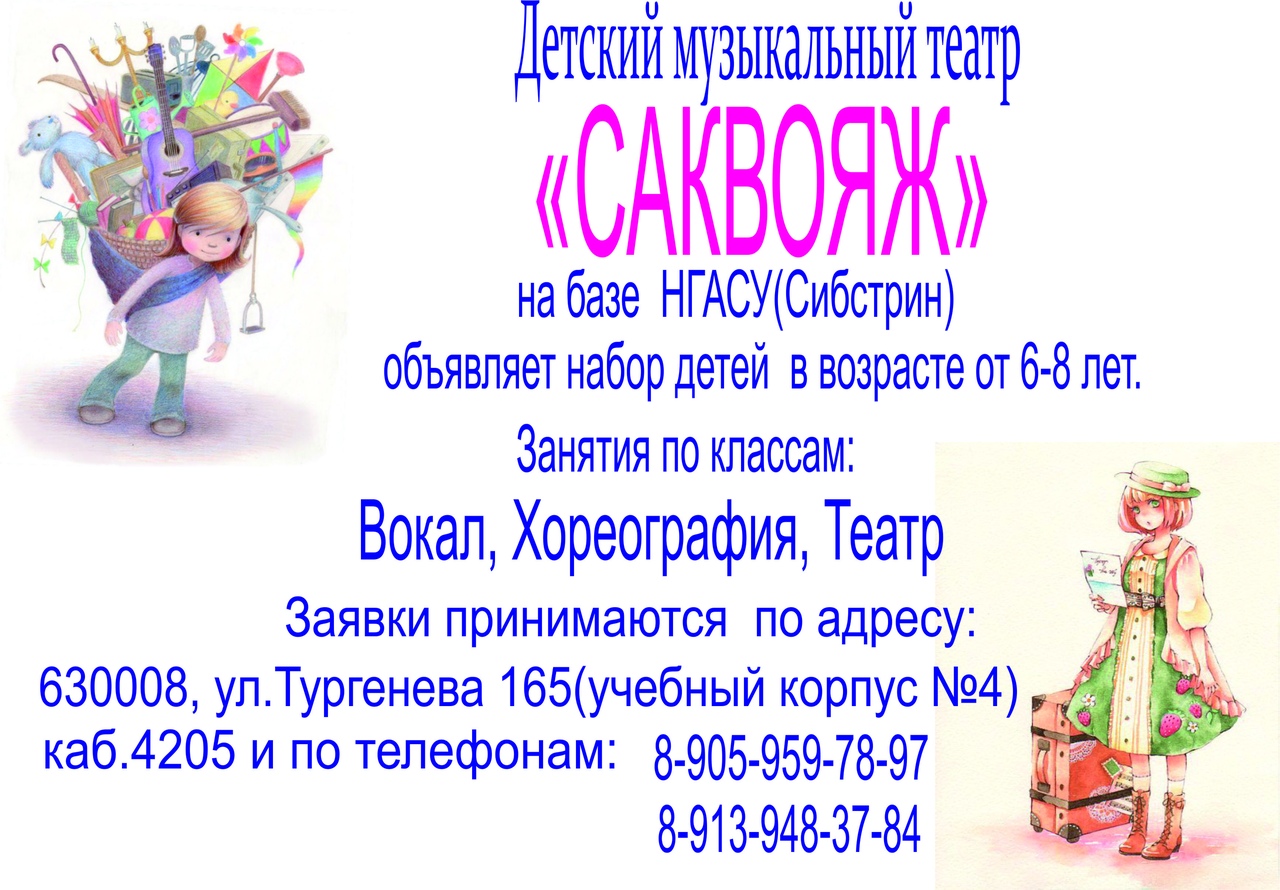 Детский музыкальный театр «Саквояж» на базе НГАСУ (Сибстрин) объявляет набор детей 6-8 лет