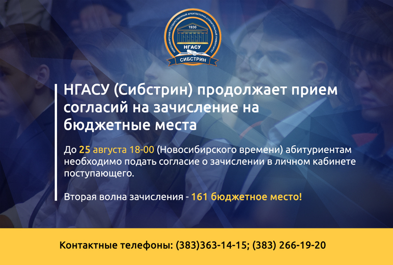 Вниманию абитуриентов! НГАСУ (Сибстрин) продолжает прием согласий на зачисление на бюджетные места