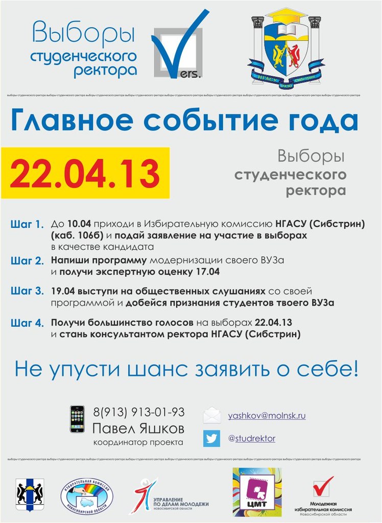 Заявление нужно подать до 10.04 в избирательную комиссию НГАСУ (Сибстрин) (каб.112).