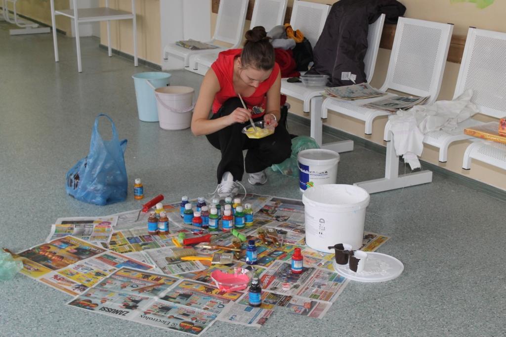 В детском отделении Новосибирского областного противотуберкулезного диспансера студенты 411 группы: Нижегородцева Юля, Хлыбова Юля, Коваль Соня, Атанова Рита, Пекшева Юля, Шостак Алена оформили коридор, который является приглашающим пространством к холлу.