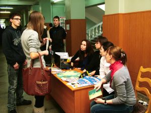 В течение всего дня в холле актового зала работали стенды факультетов, где школьники и их родители могли получить подробную информацию по поступлению в наш вуз и задать все интересующие вопросы. Факультеты представили очень интересную выставку – факультет инженерных и информационных технологий продемонстрировал опыты на определение химического состава строительных материалов, инженерно-экологический факультет представил богатую коллекцию виде-роликов и презентаций о жизни факультета, строительный факультет, архитектурно-градостроительный факультет, факультет экономики, менеджмента и гуманитарного образования представили школьникам хороший раздаточный материал, показали лучшие квалификационные работы, яркие презентации.
