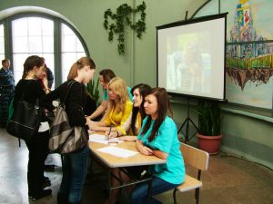 Силами студентов 381 группы для всех желающих была проведена ознакомительная экскурсия по университету. Школьники посетили вычислительный центр, спортивно-оздоровительный комплекс, музей, выставки макетов, витражей, выпускных квалификационных работ, общежития и т.д. Студенты кафедры Архитектурного проектирования зданий и сооружений демонстрировали технику рисования песком.