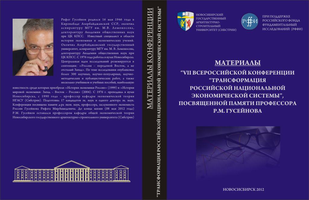 А также силами кафедры был выпущен сборник трудов профессора Р.М. Гусейнова. Настоящее издание – дань уважения коллег замечательному человеку, ученому, исследователю, профессору, доктору экономических наук Гусейнову Рифату Мирахмедовичу, ушедшему от нас «до срока» в мае 2012 года.