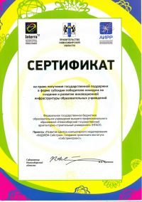 В завершение форума 15 сентября 2012 года состоялось торжественное вручение Губернатором Новосибирской области В.А. Юрченко сертификатов на право получения государственной поддержки в форме субсидий победителям конкурса среди высших учебных заведений на организацию и развитие научной и инновационной инфраструктуры в образовательной среде. Наш университет вошел в число победителей конкурса, наряду с НГТУ, СГГА и НГАХА.