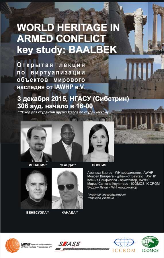3 декабря 2015 года в НГАСУ (Сибстрин) пройдет Открытая лекция по виртуализации объектов мирового наследия «World heritage in armed conflict/ Key study: Baalbek» с участием экспертов IAWHP e.V.