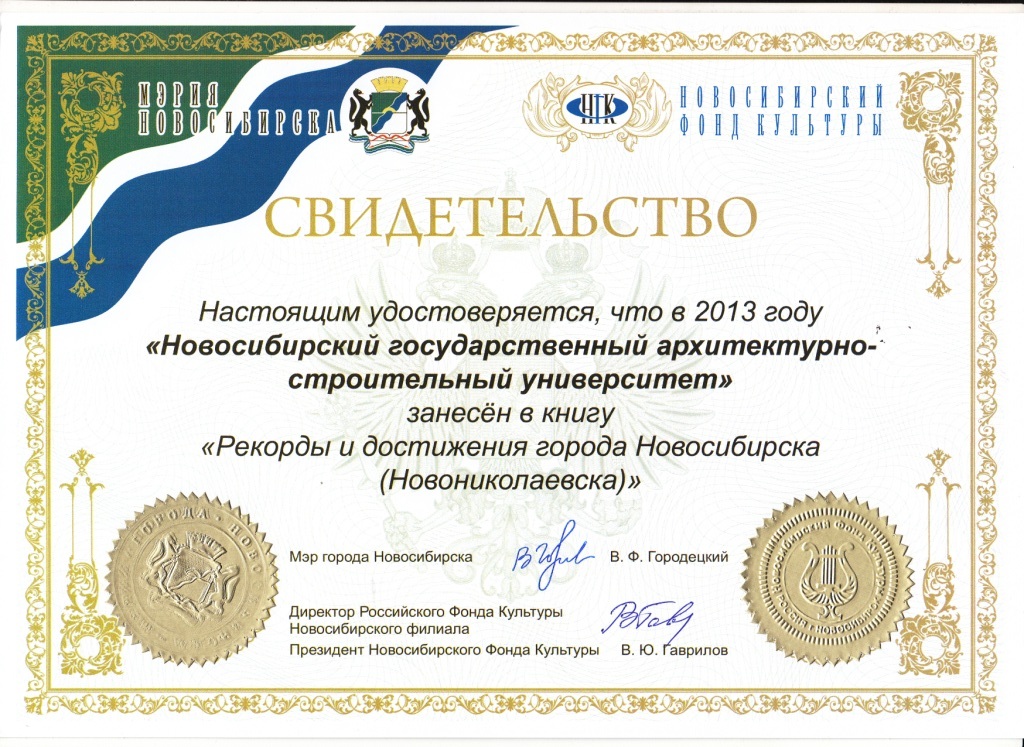 НГАСУ (Сибстрин) вошел в книгу рекордов Новосибирска
