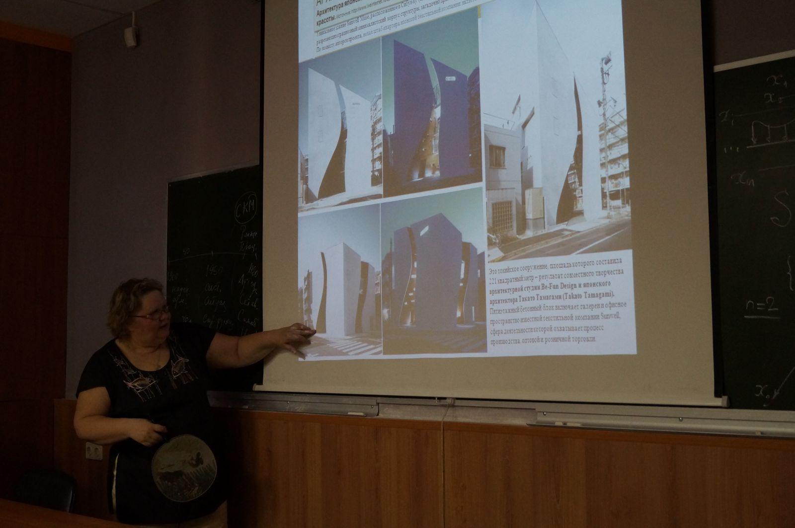 На лекции «Архитектурная бионика» Н.В. Курбатова рассказала о функциональных и красивых решениях в архитектуре, основанных на принципах бионики. Бионика (от греч. bion - элемент жизни, буквально – живущий) в архитектуре, зародившаяся в 60-е гг. XX века – направление, использующее природные организмы и механизмы их жизнедеятельности как образец для создания инновационных решений. В ходе лекции, сопровождающейся разнообразными видеоматериалами, были представлены наиболее интересные проекты выпускников НГАСУ (Сибстрин), где за основу моделирования взяты насекомые, подводный мир, макромир, природные стихии, строение тела человека и даже психологические закономерности его мышления.
