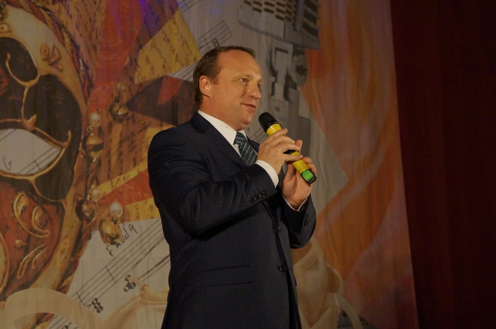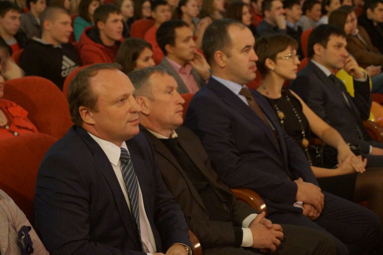 Для приветственного слова на сцену поднялся ректор НГАСУ (Сибстрин) Ю. Л. Сколубович. "Хочу сказать, что в этот торжественный день я немного завидую первокурсникам: сегодня вы посвящаетесь в студенты НГАСУ (Сибстрин). Я обещаю, что все ваши таланты, умения и способности будут востребованы и оценены, в том числе мной лично".