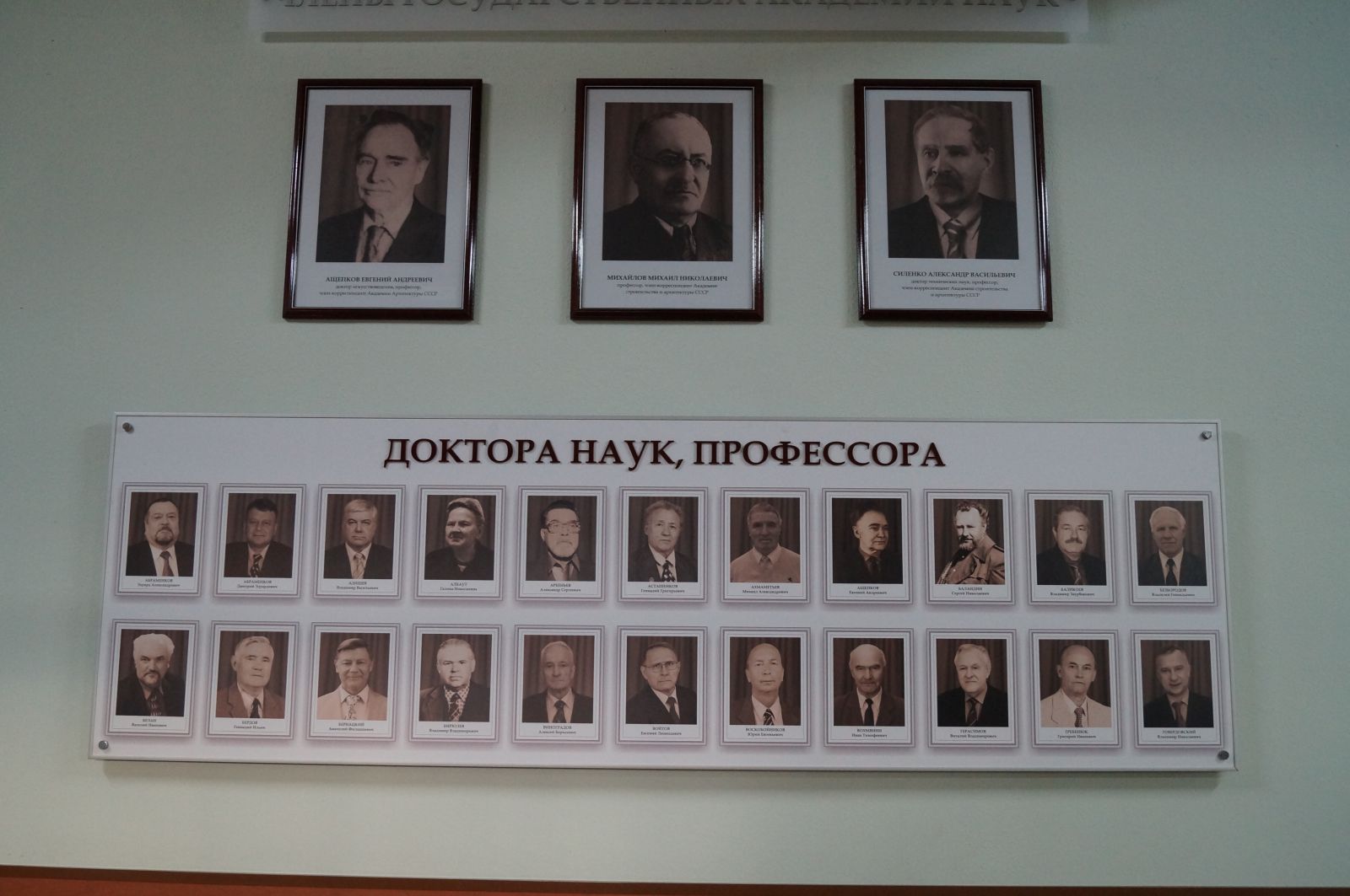 В холле третьего этажа главного корпуса НГАСУ (Сибстрин) открылась галерея видных деятелей, призванная отдать дань памяти и уважения выдающимся учёным вуза прошлого и настоящего, установить связь между поколениями сибстриновцев.