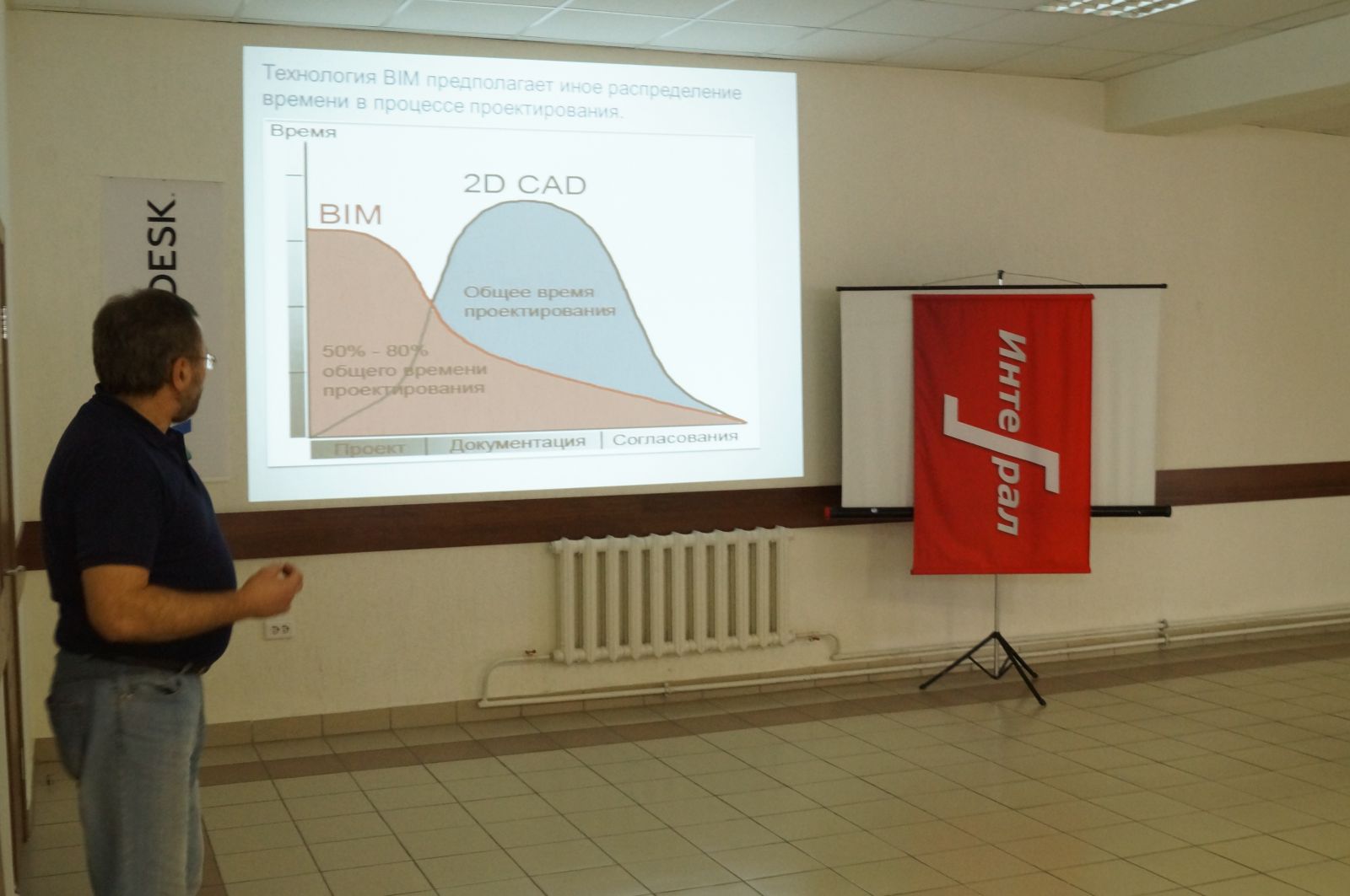 15 октября 2013 года под эгидой Областной школы по выявлению и поддержке талантливой студенческой молодежи с международным участием в области архитектурно-строительных дисциплин состоялся семинар «Технология BIM в проектировании», организованный НГАСУ (Сибстрин) и компанией «Интеграл», занимающейся продажей и установкой лицензионного программного обеспечения в Новосибирске. Следует пояснить, что BIM - технология комплексного информационного моделирования зданий - сравнительно новая, и в настоящее время активно осваивается и внедряется в строительную практику, в т. ч. российскую, для проектирования и возведения объектов.