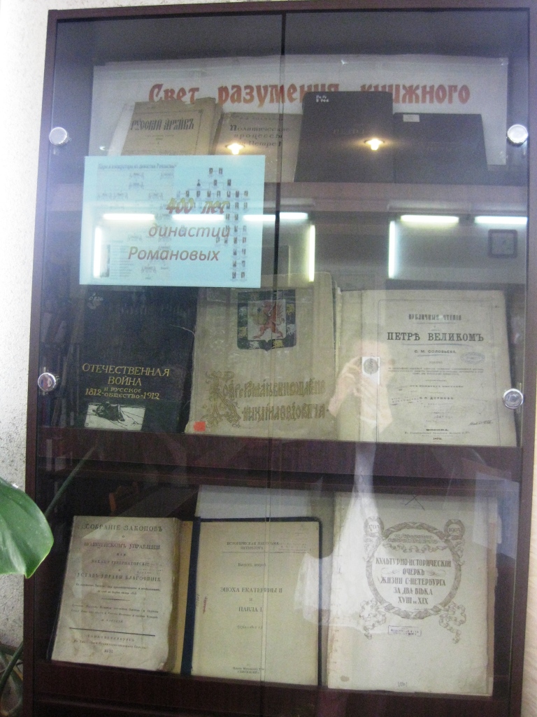 400 лет династии Романовых, приуроченная к 400-летию со дня воцарения этой династии на российском престоле. Выставка состоит из уникальных изданий Московских и Санкт-Петербургских типографий конца XIX - начала ХХ века.