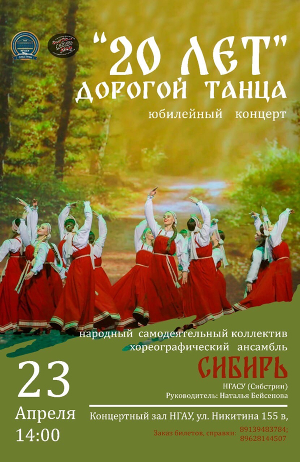 Народный самодеятельный коллектив хореографический ансамбль «Сибирь» НГАСУ (Сибстрин) приглашает на юбилейный концерт «20 лет дорогой танца»!