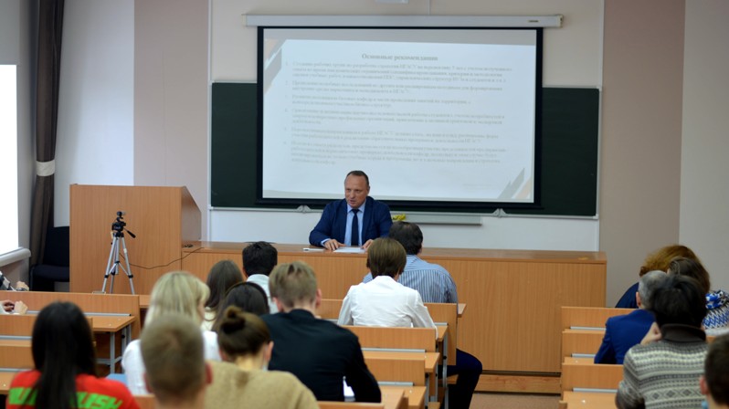 В начале встречи с презентацией итогов исследования «Аудит и оценка проблематики обучения студентов 1-3 курса в НГАСУ (Сибстрин)» выступил представитель студсовета института строительства, студент 4 курса Лев Керман. Исследование было проведено по инициативе Студенческого совета ИС в мае этого года для изучения мнений и потребностей студенческой среды. Его итоги могут быть использованы для улучшения качества образовательной, научной и внеучебной деятельности студентов, выяснения их потребностей в отношении получения знаний и практических навыков по выбранной специальности, социальной поддержки и возможностей роста, а также для улучшения взаимодействия преподавательского состава вуза со студентами. Организаторы социологического исследования проделали большую работу, итогом которой стала сформированная анкета, состоящая из 76 актуальных вопросов, само исследование, анализ данных, выводы и рекомендации. В результате исследования, в котором приняли участие около 150 студентов 1-3 курсов института строительства (36% от списочного состава ИС), были определены положительные и проблематичные, а также мало актуальные направления образовательной и внеучебной деятельности с точки зрения студентов.