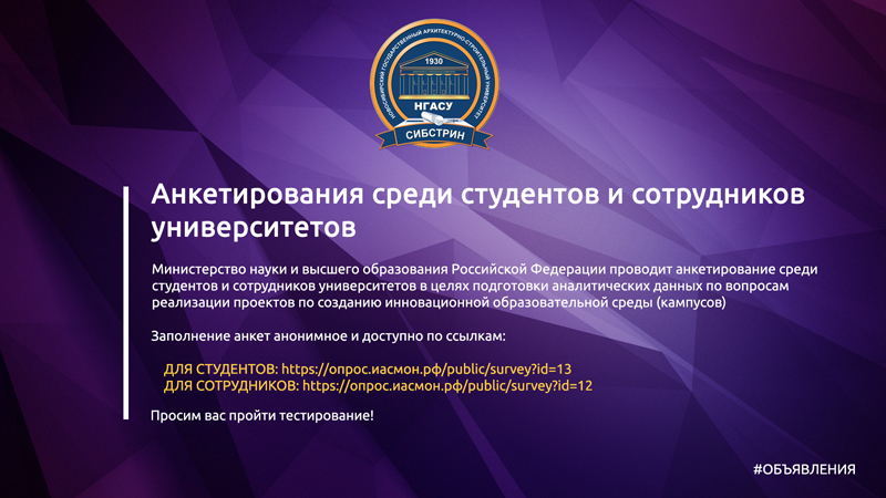 Уважаемые студенты, преподаватели и сотрудники НГАСУ (Сибстрин)!