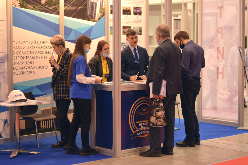 На стенде университета представлена информация об основных отраслевых объединениях, созданных по инициативе НГАСУ (Сибстрин): Научно-образовательном консорциуме строительной отрасли Новосибирской области и Региональном академическом научно-образовательном центре РААСН, также о направлениях деятельности ведущих подразделений университета: проектного института «Сибстринпроект», Института дополнительного образования, органа по сертификации продукции «СибстринСертификация», испытательного центра строительных материалов и конструкций и других.