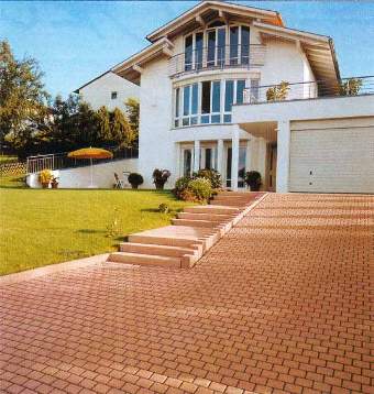 Тротуарная плитка способствует не только улучшению внешнего вида участка, но и отлично укрепляет землю, выдерживает нагрузки, часто служит основой для стоянки машин. Плитка ложится на песок, который позволяет грунтовым водам свободно уходить в землю и избавляет хозяев от слякоти и грязи. Такая кладка позволяет свободно монтировать и демонтировать плитку, если возникнет необходимость в прокладке коммуникаций.